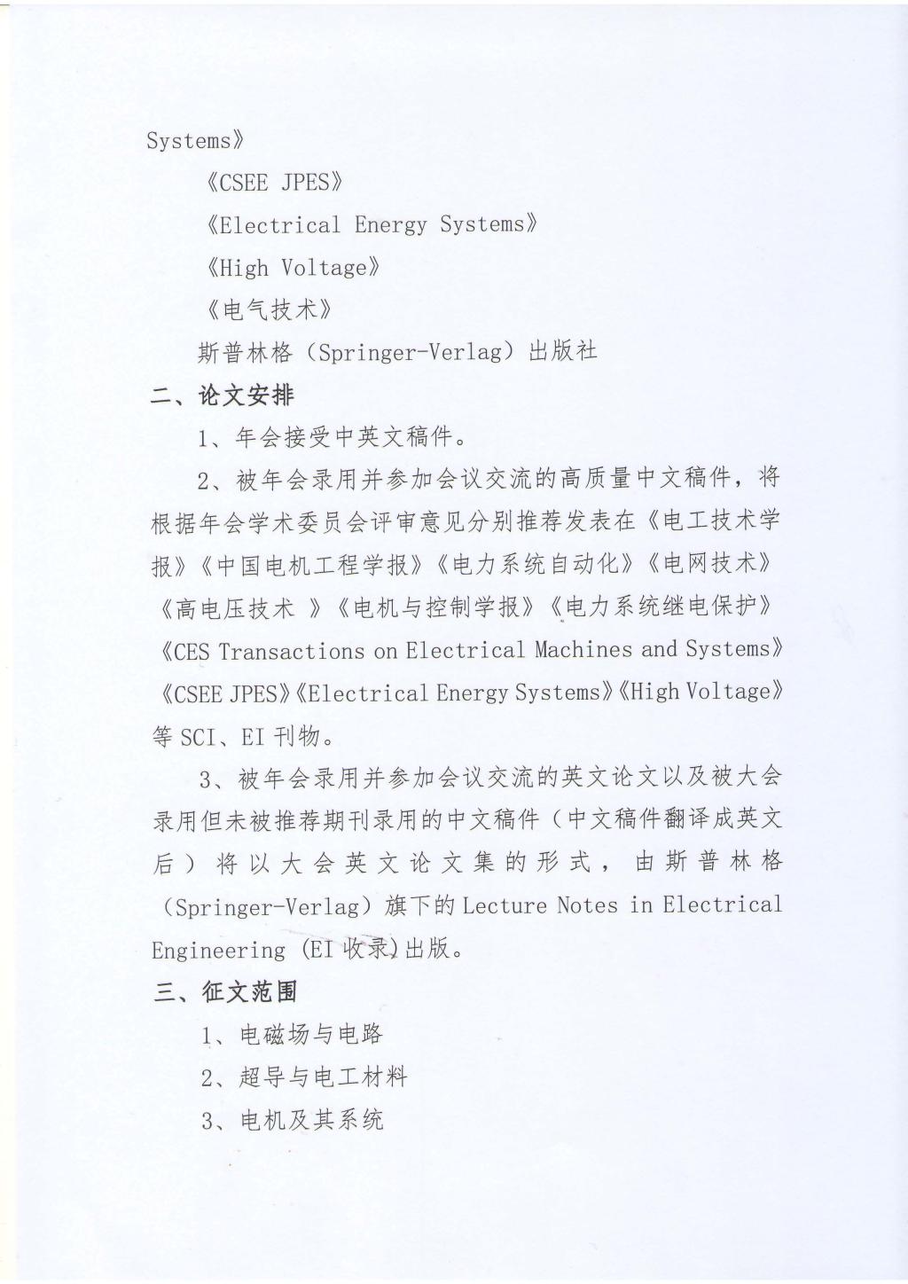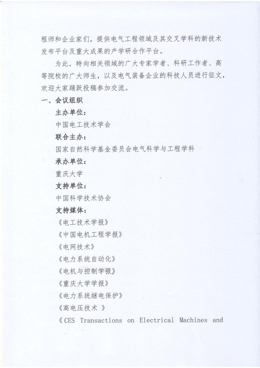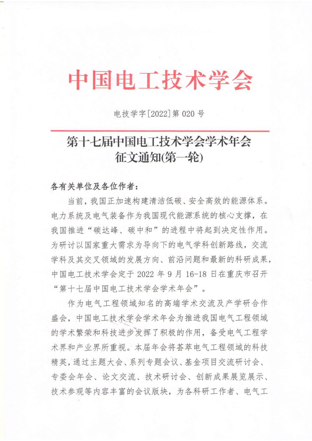 第十七届中国电工技术学会学术年会征文通知(第一轮)