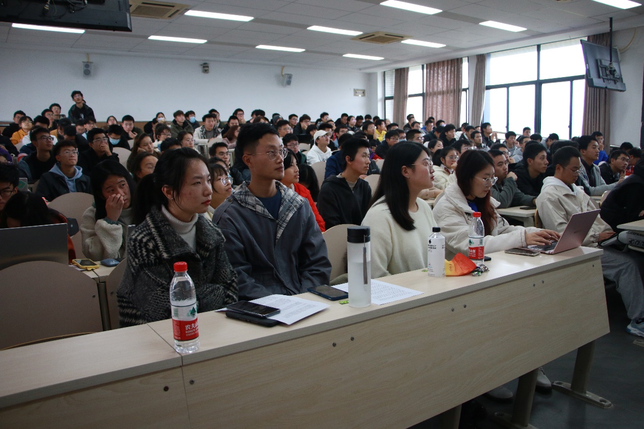 最后,已经保研到本院的18级本科生学姐李铭益带来她在本科阶段的经验。课程学习方面,学姐建议大家抓住课堂时间,紧跟老师进度,好好听课,认真完成作业,跳出内卷怪圈,不要过度内耗;竞赛科研方面,学姐推荐大家尽早了解,尽早参赛,积累经验;学生工作和社团活动方面,学姐认为大学应该是五彩斑斓的,学习之余参加活动也可以丰富大学生活,但是一定要平衡好学习和实践的时间,切不可顾此失彼。学姐真诚的分享干货满满,同学们表示十分受用。