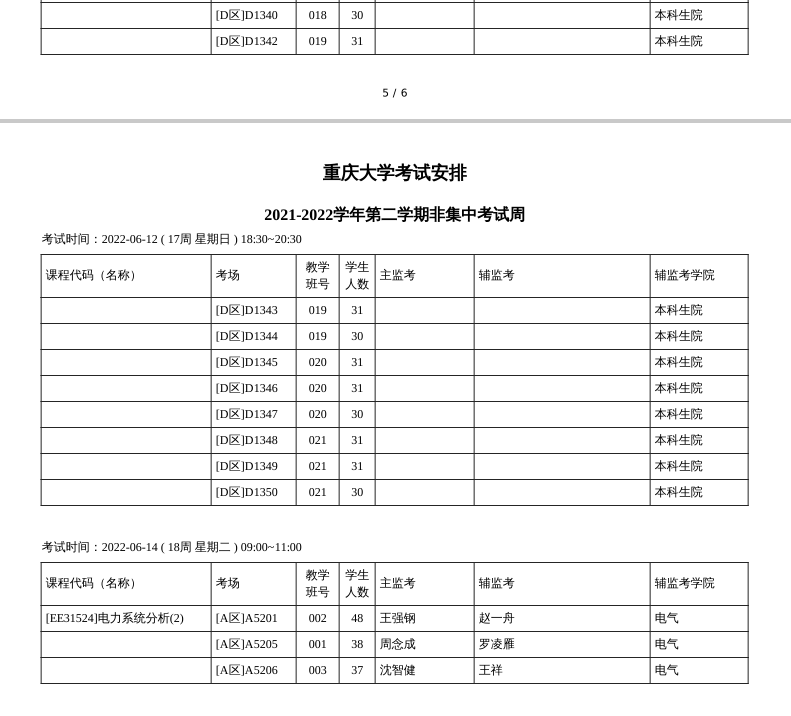 2021-2022第二学期9-17周专业课考试安排.pdf