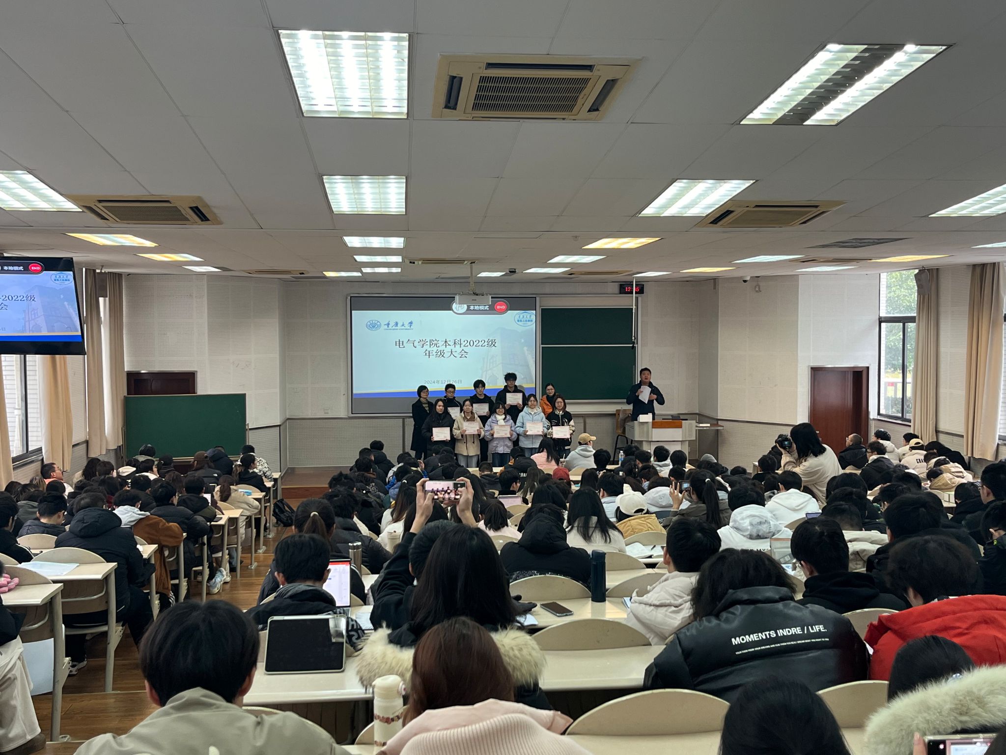 2024年12月26日,无码av 于虎溪校区第一教学楼D1137教室召开了2022级本科生年级大会。出席本次大会的有无码av 党委副书记吴嘉、学生办主任罗敏、2022级本科生辅导员喻惠以及全体2022级本科生。大会由辅导员喻惠主持。本次大会旨在全面总结本学期年级工作,表彰在评奖评优和文体活动中表现突出的集体与个人,通报近期学院内的不良现象,并安排元旦放假和寒假相关事宜。会议伊始,吴嘉副书记首先对在评奖评优和文体活动...